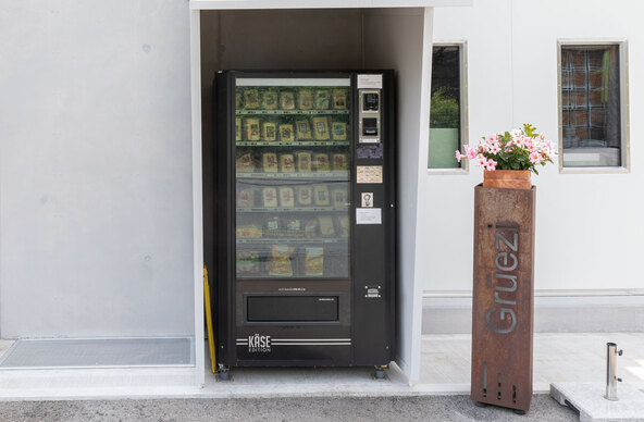 Beziehen Sie rund um die Uhr direkt an unserem Käseautomaten unsere verschiedenen Käsesorten. Sie können kontaktlos oder mit Bargeld bezahlen. Der Automat gibt Rückgeld.